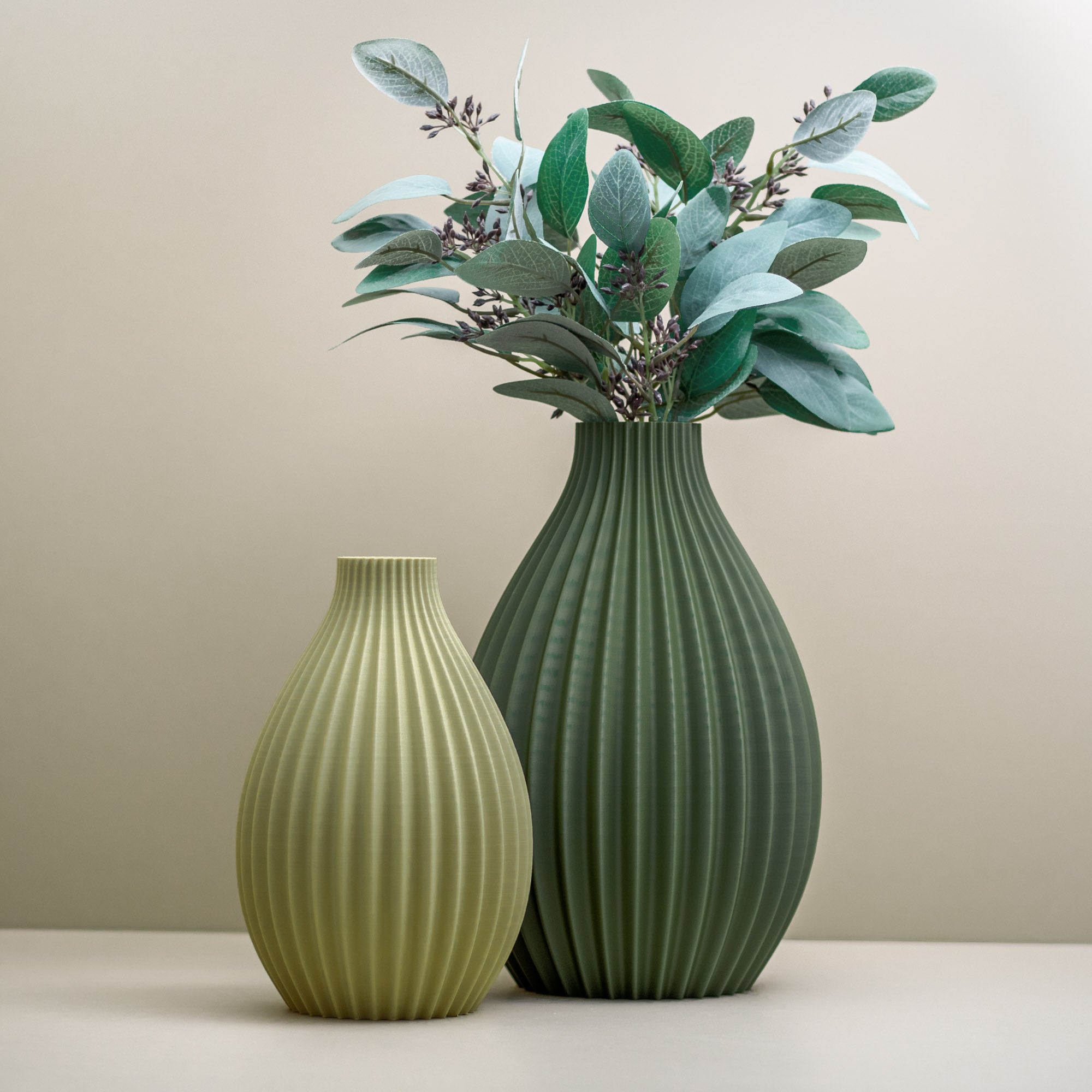 Ribbed Vase - Olive Green (For artificial or dried flowers only)
