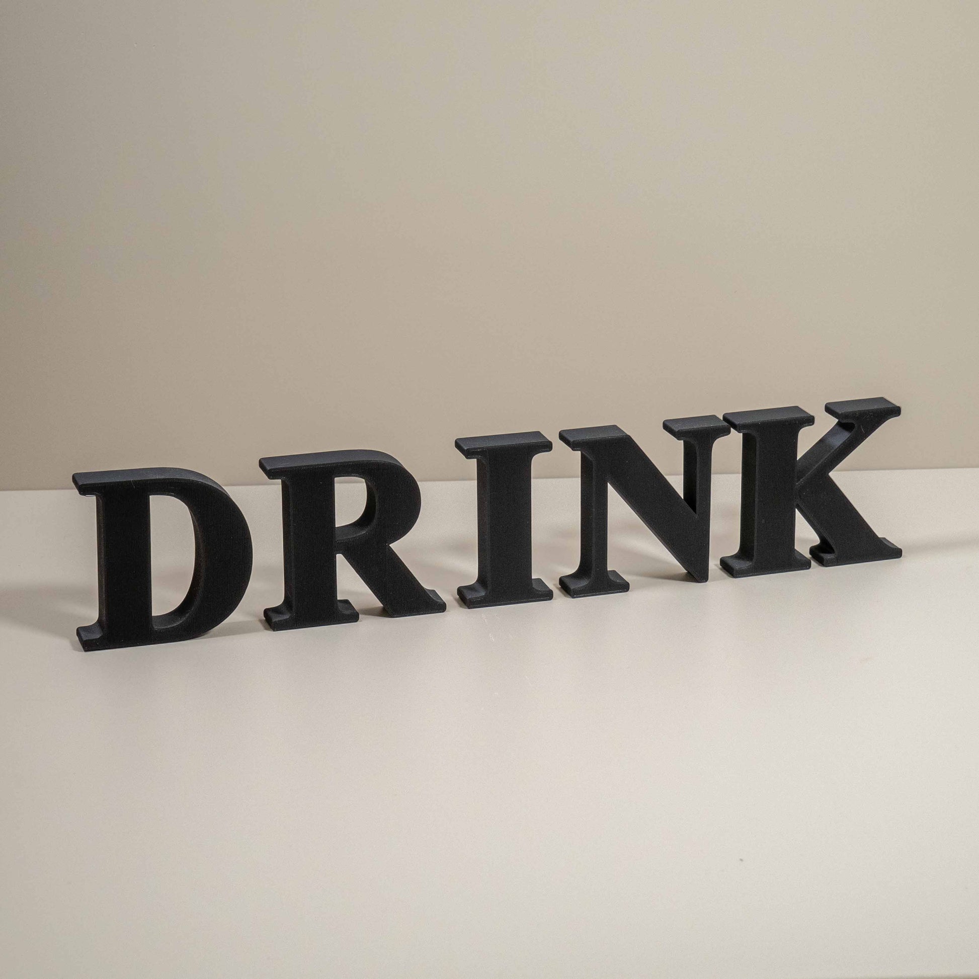 Personalise your home with these free standing 3D decorative letters. These FOOD and DRINK ornaments will fit perfectly on a kitchen shelf or can even be wall mounted. A perfect addition to any home decor. Available in black, navy blue and stone effect to suit any decor.
